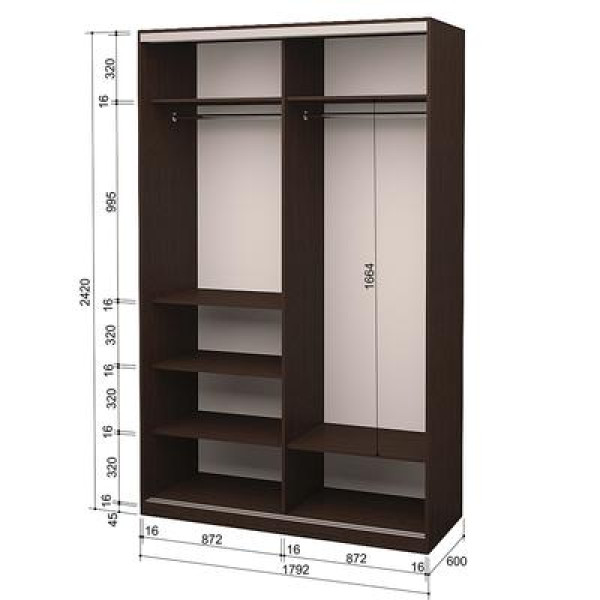 Шкаф-купе ROKO – вместительный, компактный и недорогой элемент вашего интерьера, отличающийся особой функциональностью и эргономичностью. Корпус шкафа-купе ROKO изготовлен из прочной ламинированной ДСП толщиной 16мм, ДСП фасады – 10мм. Шкаф устанавливается на регулируемые ножки, которые позволяют выставить шкаф ровно. Внешние детали закромкованы ПВХ 2 мм, полки и ящики – о,5мм. Раздвижная система в цвете серебро. В комплекте предусмотрены стоевые, крыша, дно, внутреннее наполнение (полки, трубы), направляющие, двери и комплект фурнитуры. Шкаф отгружается в разобранном виде, однако в комплекте есть инструкция по сборке, которая упростит задачу и сборщикам с опытом, и тем, кто никогда ранее не сталкивался со сборкой мебели. Прямо в каталоге у вас есть возможность подробно выбрать наружное оформление (цвет, фасады), конфигурацию (наполнение) и габариты шкафа-купе. Благодаря универсальной заводской присадке во время установки вы можете изменить расположение внутреннего наполнения – изменить его зеркально или увеличить/уменьшить расстояние между элементами. Полки устанавливаются с шагом в 320мм. Общая высота шкафа 242 см. Любой шкаф можно доукомплектовать приставным радиусным элементом и ящичным блоком. Для этого необходимо приобрести товар подходящего размера отдельно в каталоге. Выдвижные ящики можно монтировать между любыми двумя полками шкафа. Шкаф отгружается в разобраном и упакованном виде. Упаковка - гофрокартон. В комплекте: крыша, дно, боковые стойки, задняя стенка ДВП, комплект фурнитуры, детали для внутреннего наполнения, фасады, инструкция по сборке.