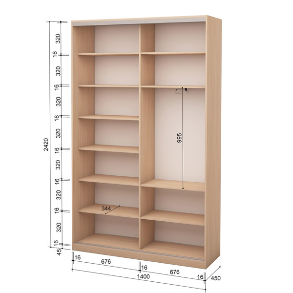 Шкаф-купе ROKO – вместительный, компактный и недорогой элемент вашего интерьера, отличающийся особой функциональностью и эргономичностью. Корпус шкафа-купе ROKO изготовлен из прочной ламинированной ДСП толщиной 16мм, ДСП фасады – 10мм. Шкаф устанавливается на регулируемые ножки, которые позволяют выставить шкаф ровно. Внешние детали закромкованы ПВХ 2 мм, полки и ящики – о,5мм. Раздвижная система в цвете серебро. В комплекте предусмотрены стоевые, крыша, дно, внутреннее наполнение (полки, трубы), направляющие, двери и комплект фурнитуры. Шкаф отгружается в разобранном виде, однако в комплекте есть инструкция по сборке, которая упростит задачу и сборщикам с опытом, и тем, кто никогда ранее не сталкивался со сборкой мебели. Прямо в каталоге у вас есть возможность подробно выбрать наружное оформление (цвет, фасады), конфигурацию (наполнение) и габариты шкафа-купе. Благодаря универсальной заводской присадке во время установки вы можете изменить расположение внутреннего наполнения – изменить его зеркально или увеличить/уменьшить расстояние между элементами. Полки устанавливаются с шагом в 320мм. Общая высота шкафа 242 см. Любой шкаф можно доукомплектовать приставным радиусным элементом и ящичным блоком. Для этого необходимо приобрести товар подходящего размера отдельно в каталоге. Выдвижные ящики можно монтировать между любыми двумя полками шкафа. Шкаф отгружается в разобраном и упакованном виде. Упаковка - гофрокартон. В комплекте: крыша, дно, боковые стойки, задняя стенка ДВП, комплект фурнитуры, детали для внутреннего наполнения, фасады, инструкция по сборке.