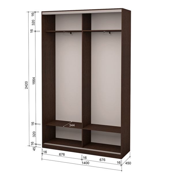 Шкаф-купе ROKO 2 двери (ДСП) 2.22.242.45-1 (1400*450*2420Н)