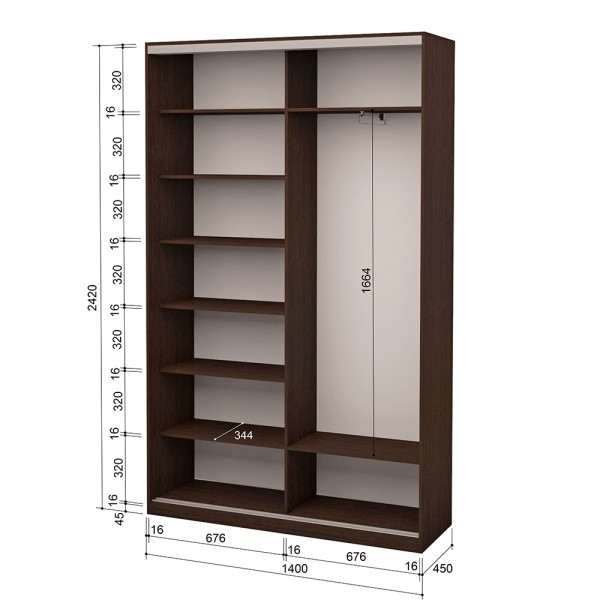 Шкаф-купе ROKO 2 двери (ДСП) 2.62.242.45-1 (1400*450*2420Н)