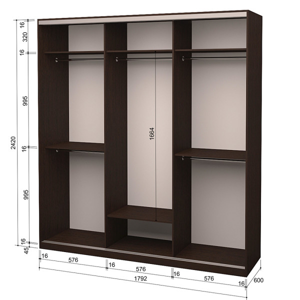 Шкаф-купе ROKO 3 двери (2 ДСП + зеркало) 3.222.242.60-3 (1792*600*2420Н)