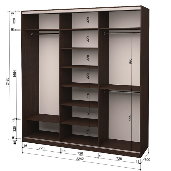 Шкаф-купе ROKO 3 двери (2 ДСП + зеркало) 3.262.242.60-3 (2242*600*2420Н)