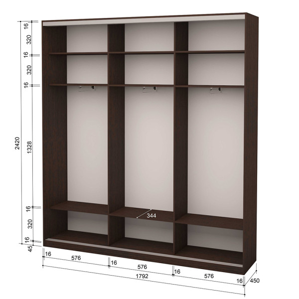 Шкаф-купе ROKO – вместительный, компактный и недорогой элемент вашего интерьера, отличающийся особой функциональностью и эргономичностью. Корпус шкафа-купе ROKO изготовлен из прочной ламинированной ДСП толщиной 16мм, ДСП фасады – 10мм. Шкаф устанавливается на регулируемые ножки, которые позволяют выставить шкаф ровно. Внешние детали закромкованы ПВХ 2 мм, полки и ящики – о,5мм. Раздвижная система в цвете серебро. В комплекте предусмотрены стоевые, крыша, дно, внутреннее наполнение (полки, трубы), направляющие, двери и комплект фурнитуры. Шкаф отгружается в разобранном виде, однако в комплекте есть инструкция по сборке, которая упростит задачу и сборщикам с опытом, и тем, кто никогда ранее не сталкивался со сборкой мебели. Прямо в каталоге у вас есть возможность подробно выбрать наружное оформление (цвет, фасады), конфигурацию (наполнение) и габариты шкафа-купе. Благодаря универсальной заводской присадке во время установки вы можете изменить расположение внутреннего наполнения – изменить его зеркально или увеличить/уменьшить расстояние между элементами. Полки устанавливаются с шагом в 320мм. Общая высота шкафа 242 см. Любой шкаф можно доукомплектовать приставным радиусным элементом и ящичным блоком. Для этого необходимо приобрести товар подходящего размера отдельно в каталоге. Выдвижные ящики можно монтировать между любыми двумя полками шкафа. Шкаф отгружается в разобраном и упакованном виде. Упаковка - гофрокартон. В комплекте: крыша, дно, боковые стойки, задняя стенка ДВП, комплект фурнитуры, детали для внутреннего наполнения, фасады, инструкция по сборке.
