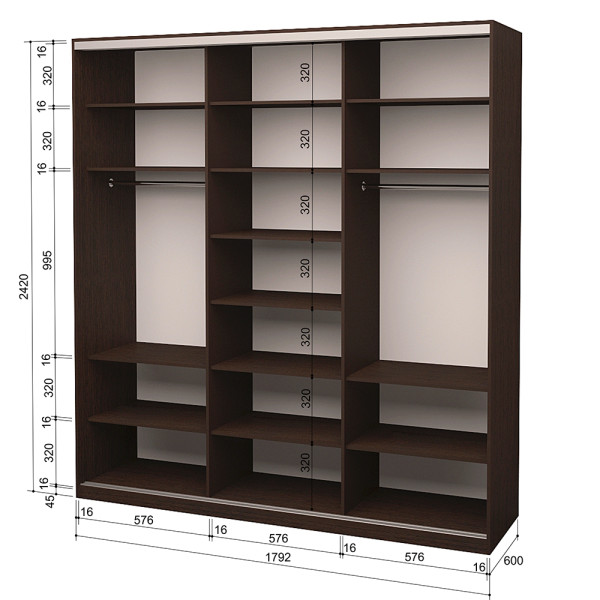 Шкаф-купе ROKO 3 двери (2 ДСП + зеркало) 3.464.242.60-2 (1792*600*2420Н)