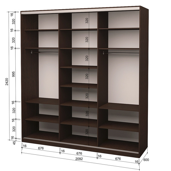 Шкаф-купе ROKO 3 двери (2 ДСП + зеркало) 3.464.242.60-2 (2092*600*2420Н)