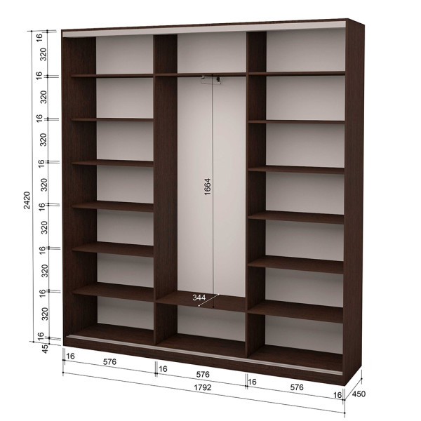 Шкаф-купе ROKO 3 двери (2 ДСП + зеркало) 3.626.242.45-1 (1792*450*2420Н)