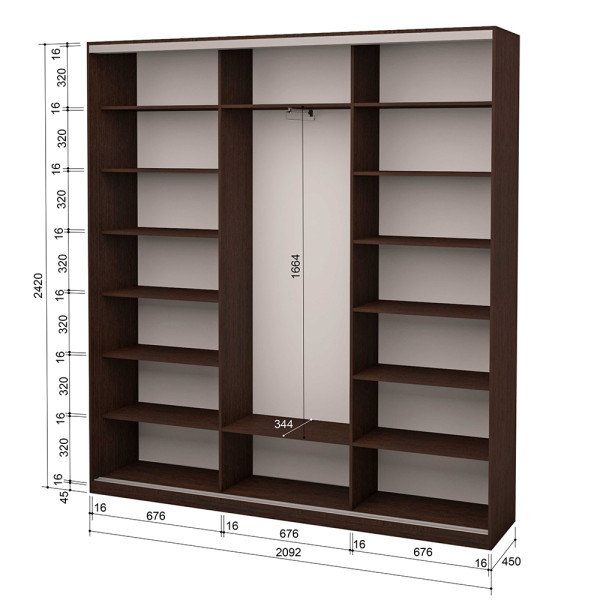 Шкаф-купе ROKO 3 двери (2 ДСП + зеркало) 3.626.242.45-1 (2092*450*2420Н)