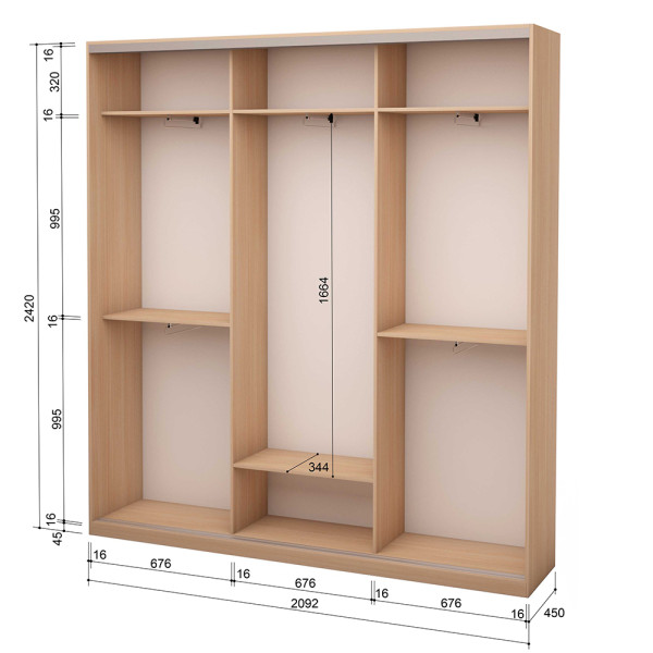 Шкаф-купе ROKO 3 двери (3 зеркала) 3.222.242.45-3 (2092*450*2420Н)