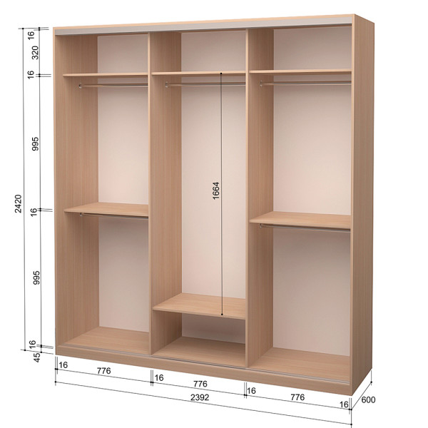 Шкаф-купе ROKO 3 двери (3 зеркала) 3.222.242.60-3 (2392*600*2420Н)