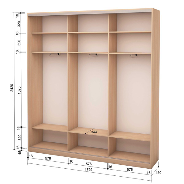 Шкаф-купе ROKO – вместительный, компактный и недорогой элемент вашего интерьера, отличающийся особой функциональностью и эргономичностью. Корпус шкафа-купе ROKO изготовлен из прочной ламинированной ДСП толщиной 16мм, ДСП фасады – 10мм. Шкаф устанавливается на регулируемые ножки, которые позволяют выставить шкаф ровно. Внешние детали закромкованы ПВХ 2 мм, полки и ящики – о,5мм. Раздвижная система в цвете серебро. В комплекте предусмотрены стоевые, крыша, дно, внутреннее наполнение (полки, трубы), направляющие, двери и комплект фурнитуры. Шкаф отгружается в разобранном виде, однако в комплекте есть инструкция по сборке, которая упростит задачу и сборщикам с опытом, и тем, кто никогда ранее не сталкивался со сборкой мебели. Прямо в каталоге у вас есть возможность подробно выбрать наружное оформление (цвет, фасады), конфигурацию (наполнение) и габариты шкафа-купе. Благодаря универсальной заводской присадке во время установки вы можете изменить расположение внутреннего наполнения – изменить его зеркально или увеличить/уменьшить расстояние между элементами. Полки устанавливаются с шагом в 320мм. Общая высота шкафа 242 см. Любой шкаф можно доукомплектовать приставным радиусным элементом и ящичным блоком. Для этого необходимо приобрести товар подходящего размера отдельно в каталоге. Выдвижные ящики можно монтировать между любыми двумя полками шкафа. Шкаф отгружается в разобраном и упакованном виде. Упаковка - гофрокартон. В комплекте: крыша, дно, боковые стойки, задняя стенка ДВП, комплект фурнитуры, детали для внутреннего наполнения, фасады, инструкция по сборке.