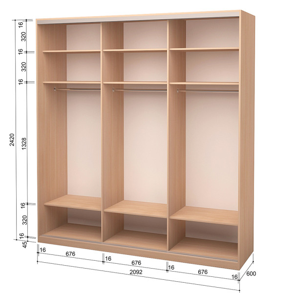 Шкаф-купе ROKO 3 двери (3 зеркала) 3.333.242.60-2 (2092*600*2420Н)