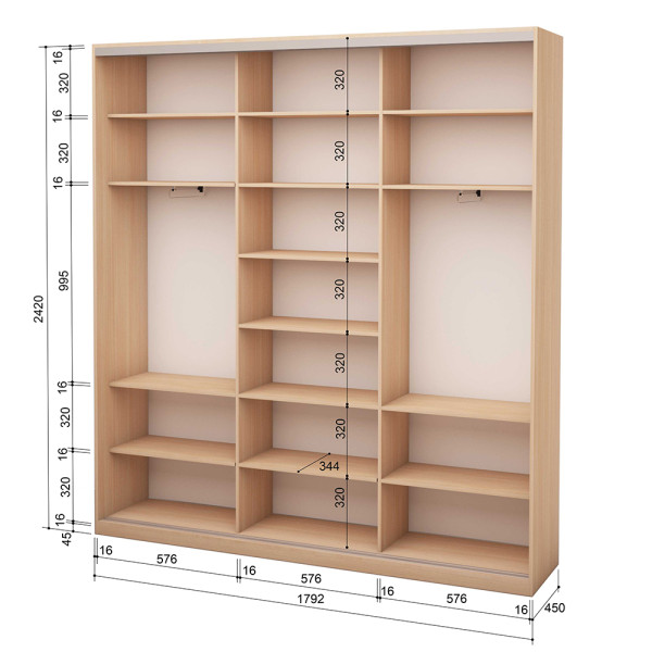 Шкаф-купе ROKO 3 двери (3 зеркала) 3.464.242.45-2 (1792*450*2420Н)