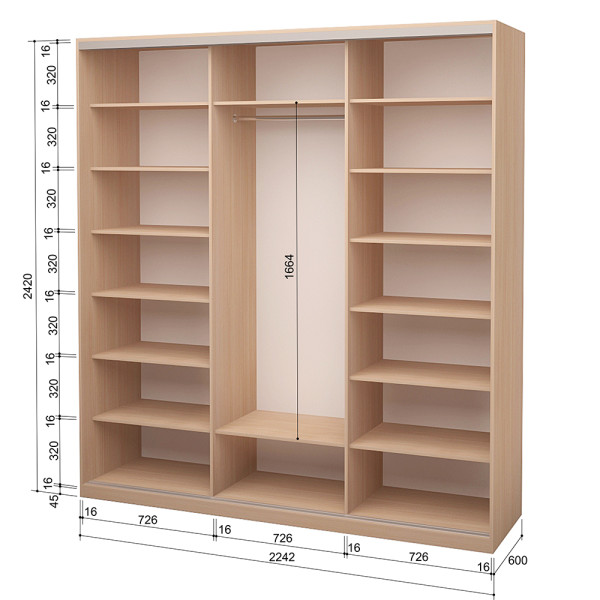 Шкаф-купе ROKO – вместительный, компактный и недорогой элемент вашего интерьера, отличающийся особой функциональностью и эргономичностью. Корпус шкафа-купе ROKO изготовлен из прочной ламинированной ДСП толщиной 16мм, ДСП фасады – 10мм. Шкаф устанавливается на регулируемые ножки, которые позволяют выставить шкаф ровно. Внешние детали закромкованы ПВХ 2 мм, полки и ящики – о,5мм. Раздвижная система в цвете серебро. В комплекте предусмотрены стоевые, крыша, дно, внутреннее наполнение (полки, трубы), направляющие, двери и комплект фурнитуры. Шкаф отгружается в разобранном виде, однако в комплекте есть инструкция по сборке, которая упростит задачу и сборщикам с опытом, и тем, кто никогда ранее не сталкивался со сборкой мебели. Прямо в каталоге у вас есть возможность подробно выбрать наружное оформление (цвет, фасады), конфигурацию (наполнение) и габариты шкафа-купе. Благодаря универсальной заводской присадке во время установки вы можете изменить расположение внутреннего наполнения – изменить его зеркально или увеличить/уменьшить расстояние между элементами. Полки устанавливаются с шагом в 320мм. Общая высота шкафа 242 см. Любой шкаф можно доукомплектовать приставным радиусным элементом и ящичным блоком. Для этого необходимо приобрести товар подходящего размера отдельно в каталоге. Выдвижные ящики можно монтировать между любыми двумя полками шкафа. Шкаф отгружается в разобраном и упакованном виде. Упаковка - гофрокартон. В комплекте: крыша, дно, боковые стойки, задняя стенка ДВП, комплект фурнитуры, детали для внутреннего наполнения, фасады, инструкция по сборке.