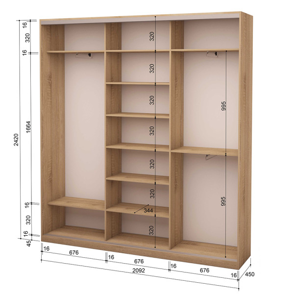 Шкаф-купе ROKO 3 двери (ДСП) 3.262.242.45-3 (2092*450*2420Н)