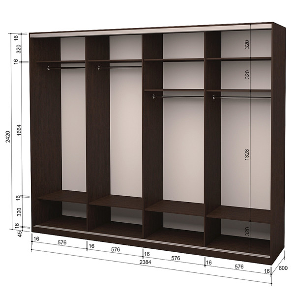 Шкаф-купе ROKO 4 двери (2 ДСП + 2 зеркала) 4.2233.242.60-4 (2384*600*2420Н)