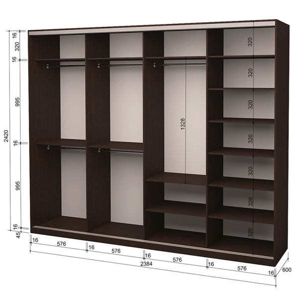 Шкаф-купе ROKO 4 двери (2 ДСП + 2 зеркала) 4.2236.242.60-3 (2384*600*2420Н)