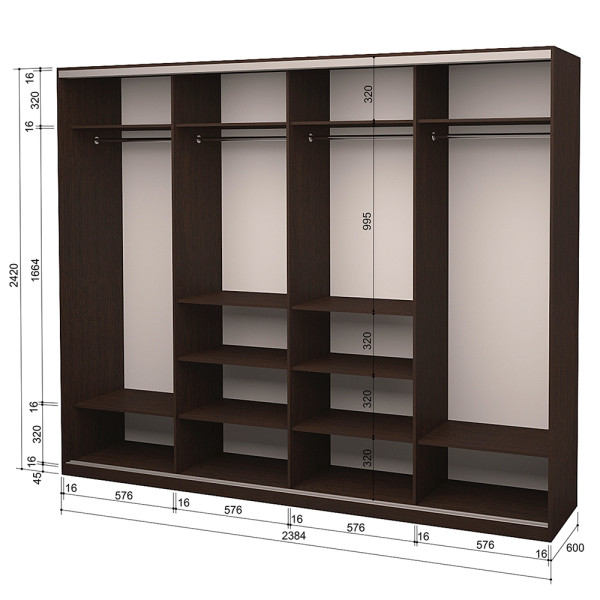 Шкаф-купе ROKO 4 двери (2 ДСП + 2 зеркала) 4.2442.242.60-2 (2384*600*2420Н)
