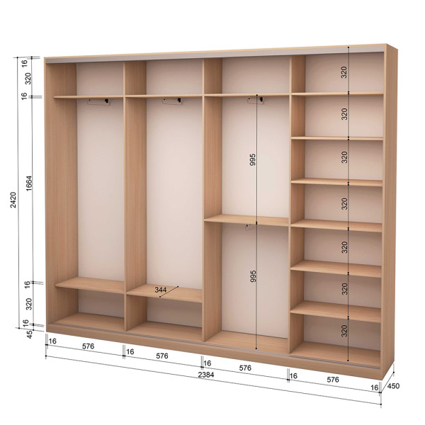 Шкаф-купе ROKO 4 двери (4 зеркала) 4.2226.242.45-2 (2384*450*2420Н)