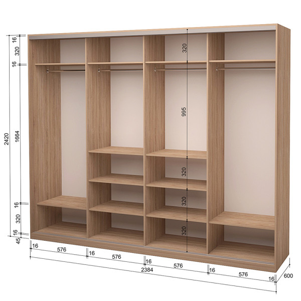 Шкаф-купе ROKO 4 двери (ДСП) 4.2442.242.60-2 (2384*600*2420Н)