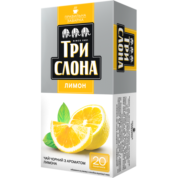 Чай черный в ф/п Три слона Лимон, 20 пакетиков.Штрих код 4820097814832UKTVED 0902300010Тип пакетВес 30 г.... Читать далее...