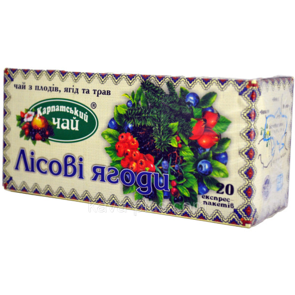 Чай травяной пакетированный Карпатский, с лесными ягодами. Смесь лесных ягод из горных склонов Карпат дарит Вам напиток с непревзойденным ароматом, незабываемым вкусом и полным комплексом полезных витаминов так необходим... Читать далее...