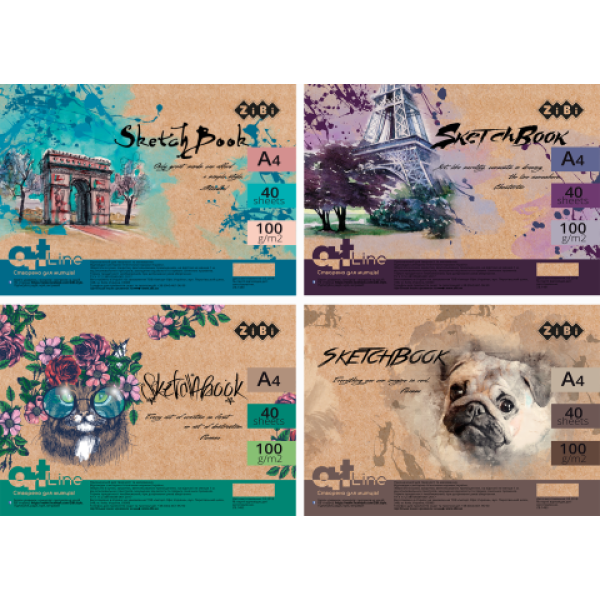 Скетчбук А4, 40 листа, пружина, кремовый блок 100 г/м2, бирюзовый ART Line (ZB.1480-99)