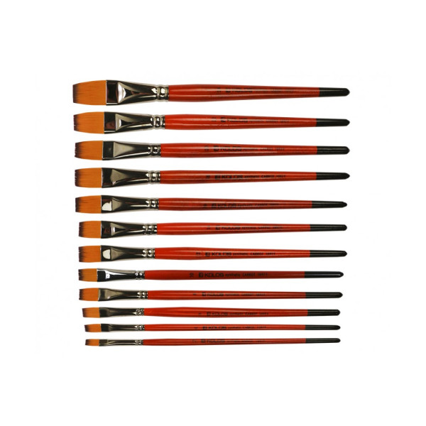 Кисти синтетические (искуственные, нейлоновые) плоские KOLOS Carrot 1097F - мягкая универсальная рыжая синтетика отличается исключительной эластичностью и упругостью волосяного пучка. Такой кистью наносят широкие ровные ... Читать далее...