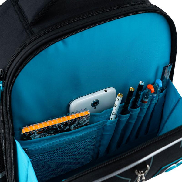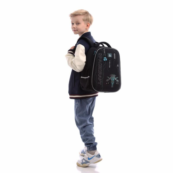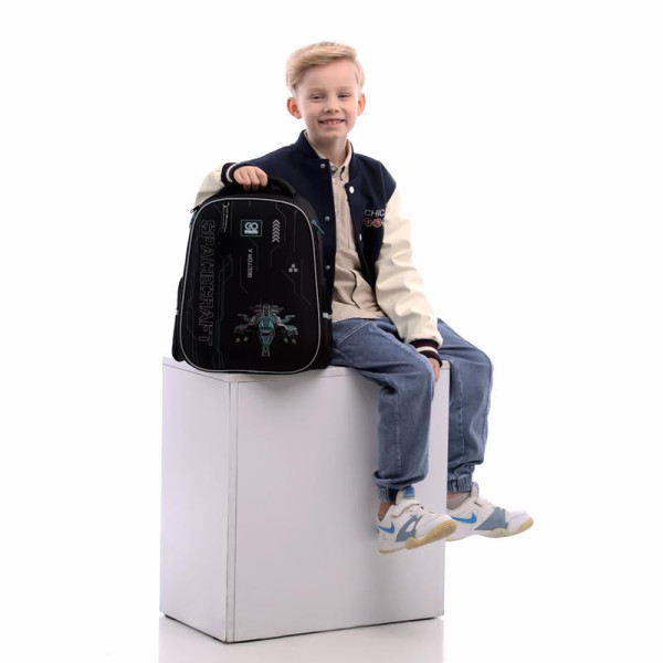 Полукаркасная конструкция обеспечивает лёгкость рюкзака, а также помогает держать форму, что делает его очень удобным для ежедневного использования. В рюкзаке легко соблюдать порядок — канцтовары и книги не мнутся и всегда остаются на своих местах. Жесткая передняя панель надежно держит форму и защищает содержимое рюкзака, а мягкие боковинки делают рюкзак облегченным. С ним ребенку будет легко поддерживать канцелярию в опрятном виде, а родителям – быть спокойными за комфорт и здоровье малышей.