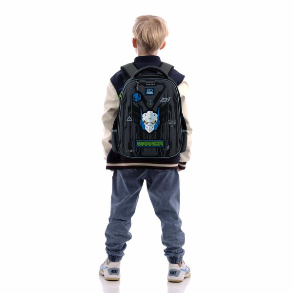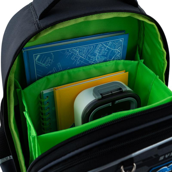Полукаркасная конструкция обеспечивает лёгкость рюкзака, а также помогает держать форму, что делает его очень удобным для ежедневного использования. В рюкзаке легко соблюдать порядок — канцтовары и книги не мнутся и всегда остаются на своих местах. Жесткая передняя панель надежно держит форму и защищает содержимое рюкзака, а мягкие боковинки делают рюкзак облегченным. С ним ребенку будет легко поддерживать канцелярию в опрятном виде, а родителям – быть спокойными за комфорт и здоровье малышей.
