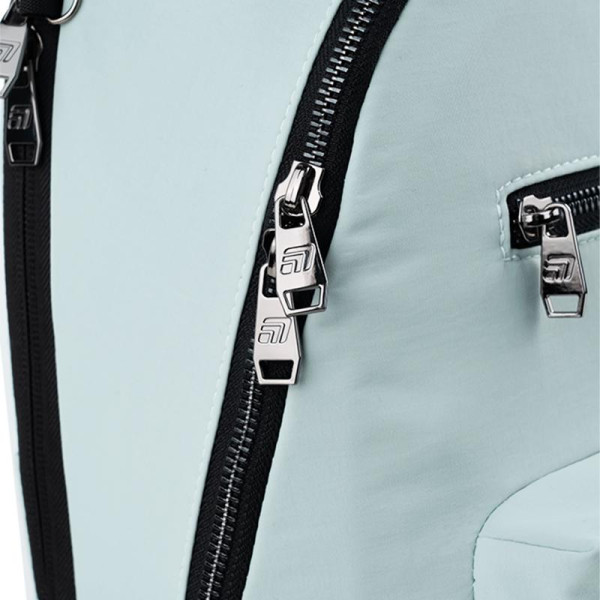 Лаконичный дизайн и изысканная сдержанность подчеркнута металлическими молниями, придающими модели особый характер. Компактный и вместительный, этот рюкзак станет верным спутником в городе и школьных коридорах. Наличие лямки для крепления на чемодане и потайном кармане делает модель незаменимой для путешествий. Благодаря своей универсальной и уравновешенной эстетике, рюкзак удачно дополнит каждый образ.