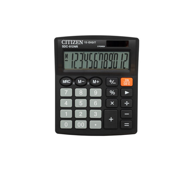 Калькулятор Citizen SDC-812NR 12-разрядный12 разрядов (количество цифр на экране).одноуровневая память.замена знака числа.клавиша вычисления процента.литиевая батарейка/солнечная батарея.однострочный цифровой дисплей.пла... Читать далее...