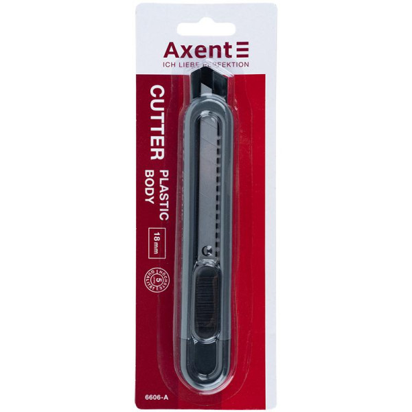 Канцелярський ніж Axent 6606-А з лезом шириною 18 мм та автофіксатором — це вибір для тих, кому потрібен надійний та точний інструмент. Він має сучасний дизайн і зручну форму корпусу, яка добре лягає в долоню та забезпеч... Читать далее...