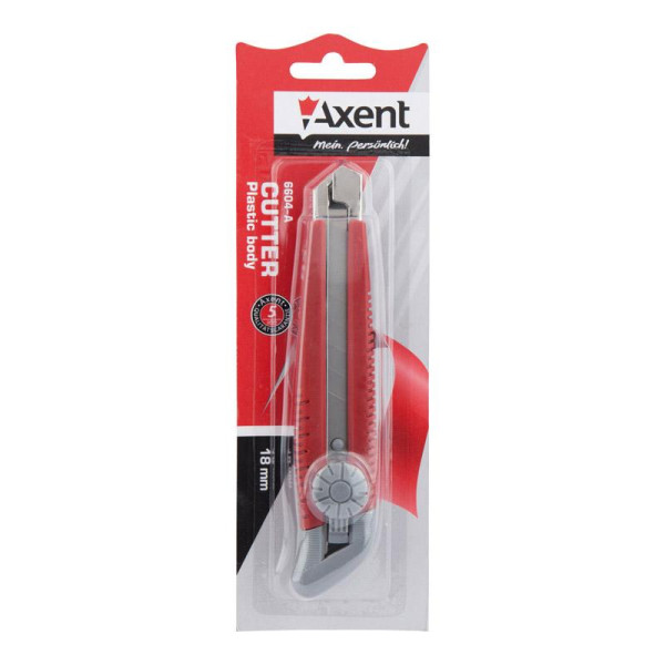 Канцелярский нож Axent - это надежный, безопасный и долговечный инструмент для использования в офисе, на складе, на производстве или в быту благодаря сочетанию качества материала, продуманности деталей и надежности механизма. Стальное многосекционное лезвие обеспечивает наивысшую функциональность, стойкость, остроту. Прочный пластиковый корпус устойчив к нагрузкам, не разбивается при падении. Металлические направляющие и механизм фиксации Twist-Lock (колесиком) обеспечивают ступенчатую подачу лезвия, безопасную работу, исключают риск произвольного выпадения или проваливания лезвия. Крышечка с пазом позволяет просто и безопасно обломить затупленную часть лезвия вдоль линии насечки и продолжать пользоваться острым лезвием. Эргономичный дизайн корпуса адаптирован под форму ладони. В корпусе есть отверстие для шнурка. Блистерная упаковка.