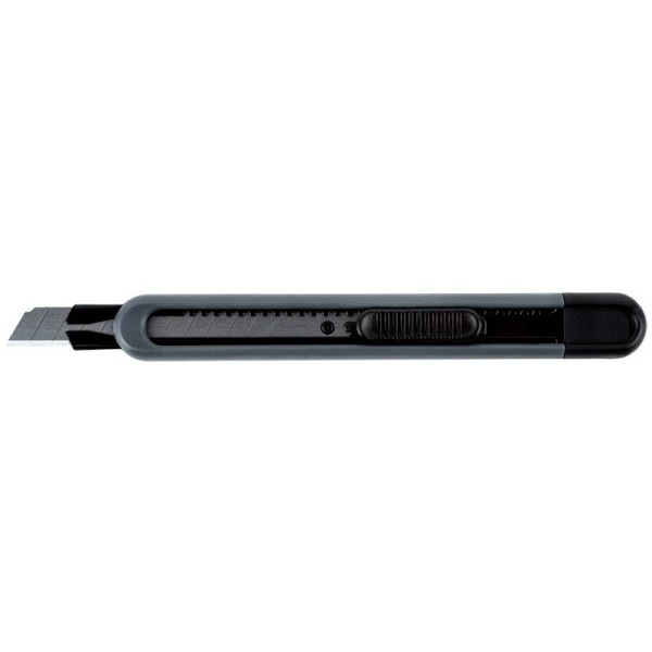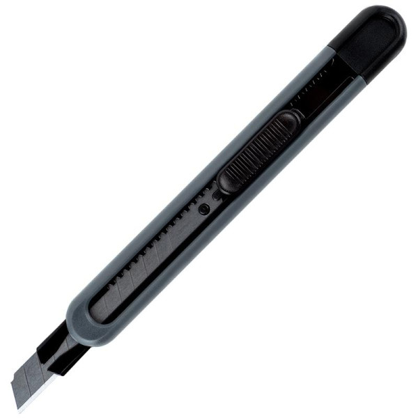 Надёжная металлическая направляющая обеспечивает устойчивость лезвия, что особенно важно для мелкой и аккуратной работы. Механизм автофиксации прочно удерживает лезвие в нужном положении — без лишних усилий и риска самопроизвольного смещения во время работы. Оптимальный вариант для офиса, учёбы, рукоделия и бытовых нужд. Компактный размер и лёгкий вес делают эту модель удобной для ежедневного использования. Сдержанный чёрный цвет придаёт ножу универсальность и стильно выглядит в любом рабочем пространстве.