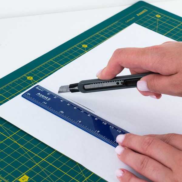 Канцелярский нож Axent 6605-А с лезвием шириной 9 мм и автофиксатором станет незаменимым помощником в повседневной работе с бумагой, плёнкой, картоном или тонким пластиком. Благодаря современному дизайну и продуманной эргономике корпуса, нож удобно лежит в руке и позволяет точно контролировать каждое движение.