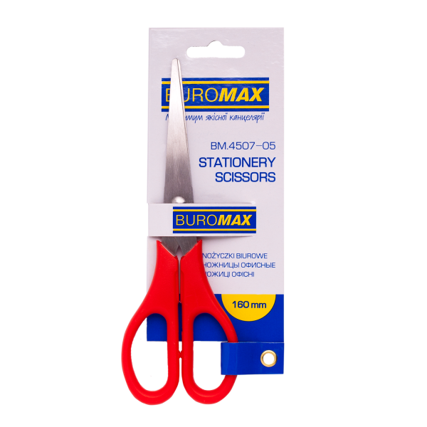 Офисные ножницы BUROMAX: подходят для резки бумаги, картона, фотобумаги, ткани и т.д.; у ножниц плавный и мягкий ход резки; закругленные лезвия изготовлены из нержавеющей стали, и гарантируют безопасность во время резки;... Читать далее...