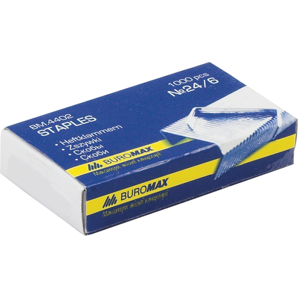 Скобы №24/6 JOBMAX от BUROMAX – идеальны для использования в степлерах BUROMAX. Прочно скрепляют страницы, изготовлены из металла, упакованы в картонную коробку в количестве 1000 штукТип №24/6Цвет никелированный... Читать далее...