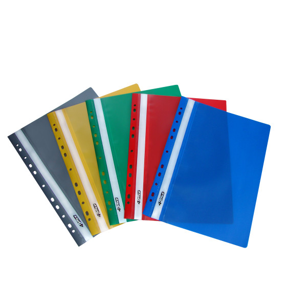 Папка-скоросшиватель, формат А4, материал PР, толщина пластика 100/120 мкн, прозрачный верх, с перфорацией, цета в ассортименте, 4OFFICE 4-270... Читать далее...