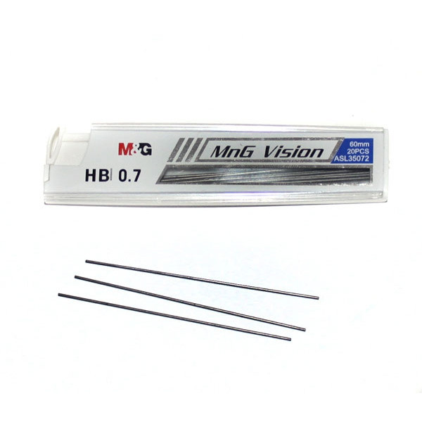 Грифеля M & G для механических карандашей.- Твердость: НВ;- Стержень: 0,7 мм;- 20 штук, в пластиковом прозрачном футляре.... Читать далее...