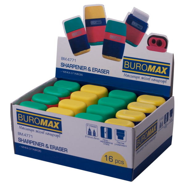 Ластик для карандашей + точилка ТМ Buromax с популярным покрытием Rubber Touch - специальное бархатное покрытие для невероятных тактильных ощущений!для заточки карандашей стандартного диаметра 8 мм и "джамбо" 12 мм (2 от... Читать далее...