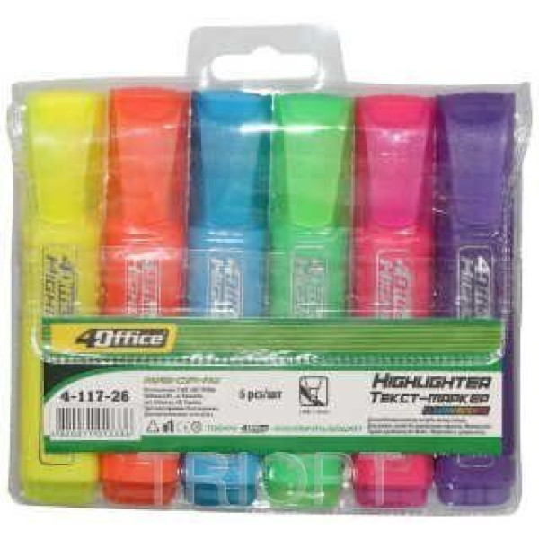 Набор текстмаркеров 4Office для выделения текста на любом типе бумаги, в том числе и факсовой. Чернила на водной основе не токсичны, отлично ложатся на бумагу, не выгорают, не размазываются, не проявляются при ксерокопир... Читать далее...