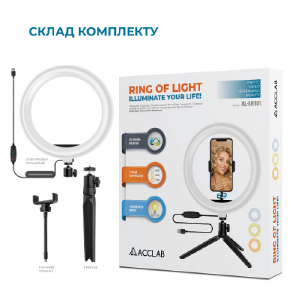 набор для блоггера, кольцевая лампа, Назначение - для смартфона, Комплектация - кольцевая LED лампа, держатель телефона, Тип установки - настольный, Наружный диаметр лампы - 26 см, Внутренний диаметр лампы - 20 см, Высот... Читать далее...