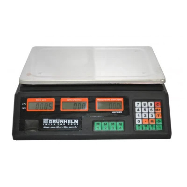 Производитель GrunhelmМодель GSC-051Артикул GSC-051Тип торговыеТип дисплея жидкокристаллическийЦвет символов индикатора серыйПодсветка экрана даЦвет подсветки экрана зеленыйДискретность отсчета 5 гПредел взвешивания 50 к... Читать далее...