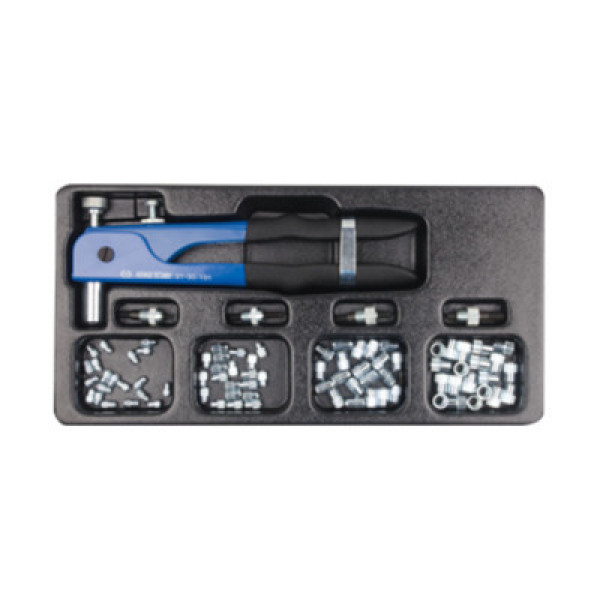 Производитель KING TONYМодель с набором заклепок 85шт.Артикул 21-30-09MRТип ручнойВид заклепщика одноручныйМатериалы заклепок сталь, алюминийДиаметр заклепок, мм M4, M5, M6, M8Тип заклепок резьбовойМатериал корпуса метал... Читать далее...